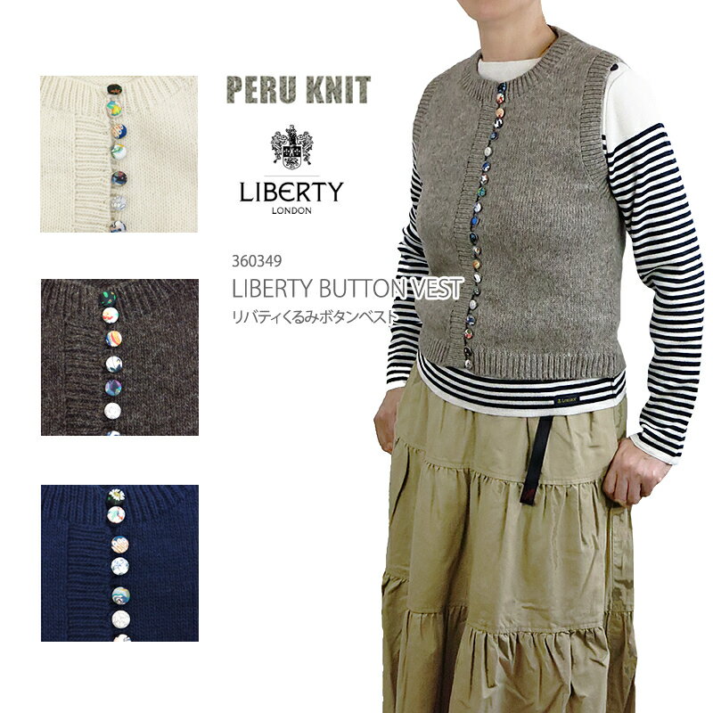 【20%OFF!】LIBERTY × PERU KNIT リバティ × ペルーニット LIBERTY BUTTON VEST 360349 リバティくるみボタン ベスト ニット 毛 ウール リバティー