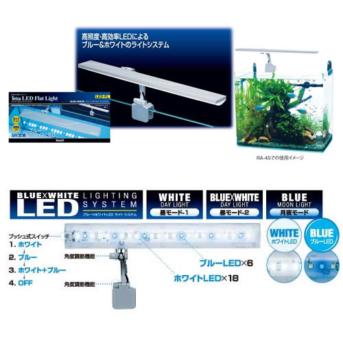 【製品仕様】 ・適合水槽:30〜45cm(但し水槽のフレーム16mm以下) ・電源:入力 AC100V/出力 DC12V ・定格消費電力:6.4W ・電源コード:1.9m ・製品サイズ(本体部):幅35.2×奥行4.5×高さ1.5cm 検索ワード:aqnew201212