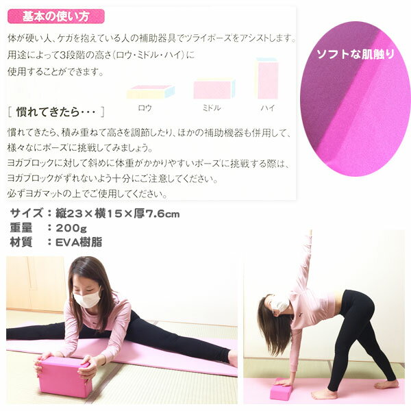 ヨガブロック ストレッチ リラックス YOGA ポーズ 補助器具 23cm お家でエクササイズ ダイエット 女性 男性 大人用 子供用 ピンク 部屋 運動 シェイプアップ 猫背 姿勢矯正 肩こり 在宅ワーク テレワーク softouch SO-YGBLK ソフタッチ
