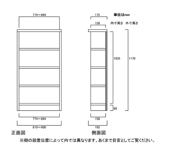 商品仕様 ■タイプ: タフ棚板(棚板厚さ2.5cm)タイプ ■棚板耐荷重: 7Kg ■外寸: 奥行19cm×高さ117cm×幅81〜90cm (幅は1cm単位でオーダーできます) ■外寸(幅): 81cm 82cm 83cm 84cm 84cm 85cm 86cm 87cm 89cm 90cm ■棚板枚数 移動固定棚板:3 共通仕様 ■材質: プリント化粧繊維板 ■塗装: ウレタン樹脂塗装 ■素材: ホルムアルデヒドの発生を最小限に抑えた基材・芯材・プリント紙・接着剤(F☆