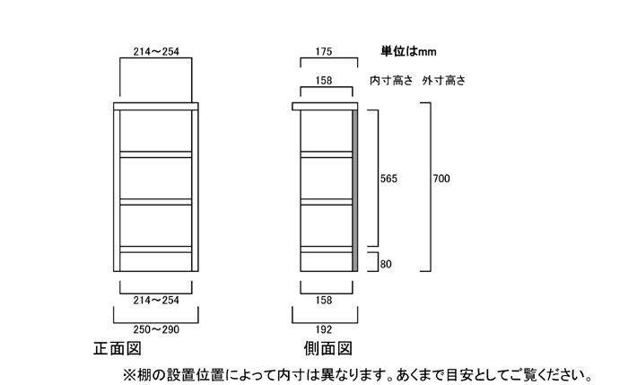 商品仕様 ■タイプ: 標準棚板(棚板厚さ1.7cm)タイプ ■棚板耐荷重: 9Kg ■外寸: 奥行19cm×高さ70cm×幅25〜29cm (幅は1cm単位でオーダーできます) ■外寸(幅): 25cm 26cm 27cm 28cm 29cm ■棚板枚数 移動棚板:2 共通仕様 ■材質: プリント化粧繊維板 ■塗装: ウレタン樹脂塗装 ■素材: ホルムアルデヒドの発生を最小限に抑えた基材・芯材・プリント紙・接着剤(F☆
