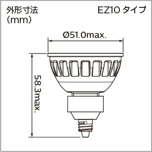ワット区分:7.2W 色温度:3,000K 角度:中角(24°) 口金:EZ10 全長:58.3mm 外径:51mm 全光束:480lm 定格寿命:40,000h ※トランスの種類によっては、うまく点灯しない可能性がございますので、 ご注意ください。