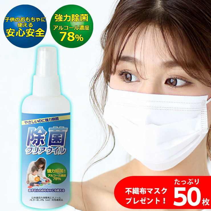 【セットでお得!】 除菌スプレー スプレー式 アルコール消毒 マスク 箱 50枚 使い捨て 不織布 【ms-h028】【即納:2-5日】【送料無料】宅込